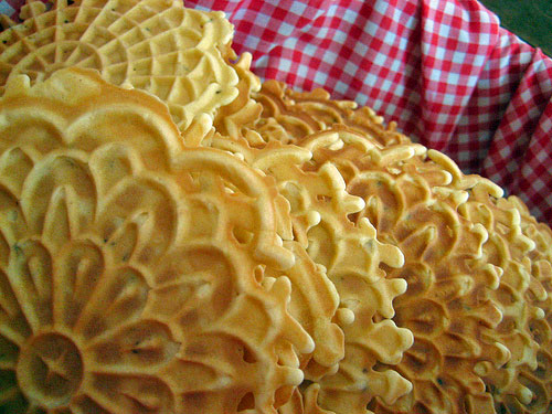 2. Place the eggs, lavender sugar, butter, flour (1 1/2 cups for thin pizzelle, 2 cups for thicker ones), baking powder, and vanilla in a bowl. Stir until smooth. Drop by rounded spoonfuls onto the pizzelle iron, following the manufacturer’s instructions for baking. Remove the baked pizzelle to a wire rack. Dust with confectioners’ sugar. Store in an airtight container.