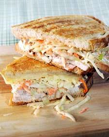 Heat a griddle or large skillet over medium-high heat. Layer turkey slices on griddle and let cook for 1 minute.