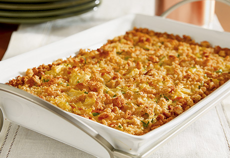 Crush crackers into small pieces. Melt butter and combine with crackers.