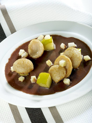 White Pudding with Apples and Celeriac, and a Black Pudding Sauce