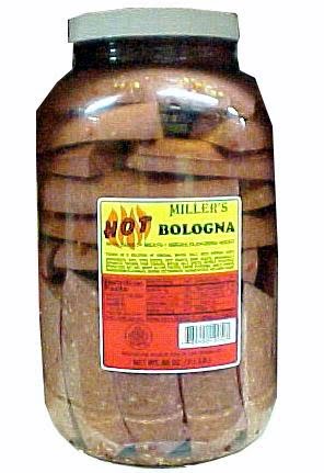 Cut ring bologna however you prefer to eat it and place in gallon jar with a good fitting lid. Add all the dried spices to the jar. Add the vinegar and water. Close lid and shake well to combine. Leave in refrigerator at least 3 weeks for flavors to blend and bologna to become seasoned.