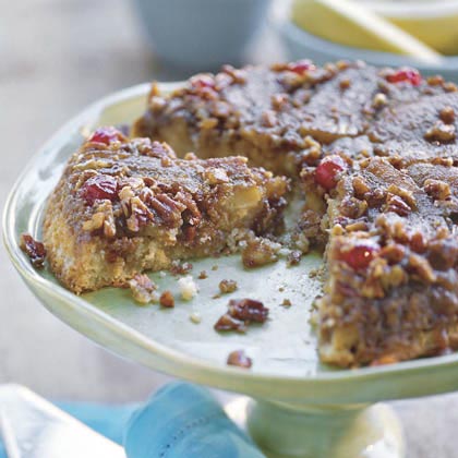 Bake at 350°F for 45 to 50 minutes or until a wooden pick inserted in center comes out clean. Cool in skillet on wire rack 10 minutes. Invert cake onto a serving plate. Serve warm with whipped cream, if desired.