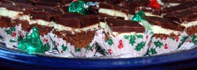 For topping, melt chocolate chips and butter. Cool for 30 minutes stirring occasionally. Spread over the filling and chill til set. Cut into bars and store in fridge .
