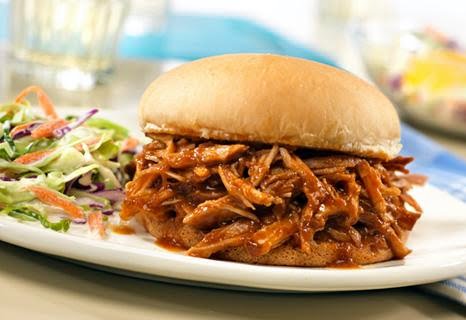 These fabulous sandwiches feature pork shoulder that is slow cooked in a scrumptious, sweet and tangy sauce to be served on sandwich buns.
