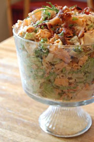 * Crumble the bacon into bite-size pieces; set aside 1/4 cup for garnish.