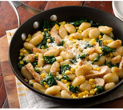 Add gnocchi, spinach and corn to skillet, cooking 3 to 5 minutes or until gnocchi is golden brown and spinach is slightly wilted. Add chicken, and cook 1 to 2 minutes longer or just until heated through.