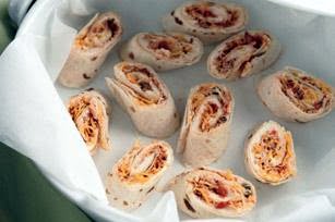 ROLL up tortillas tightly. Cut each crosswise into 5 slices.