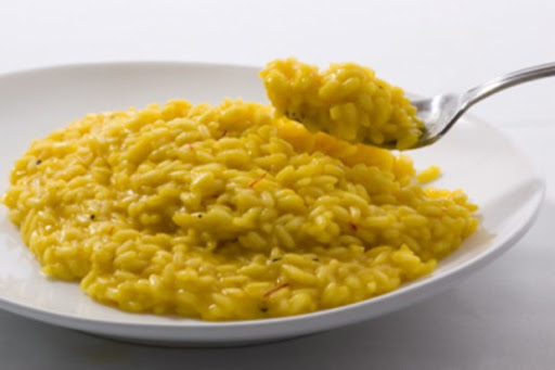 Heat about 2 tablespoons of butter in a sauce pan. Add 1 cup of a round-grain rice such as Arborio or Carnaroli and stir the rice over medium heat. Add chicken or veggie broth, one cup at a time, until the rice has absorbed 3 cups of liquid. You should stir the risotto frequently as it cooks to get a good creamy texture. (If you like, replace 1/2 cup of the broth with 1/2 cup dry white wine.) For a saffron risotto, add a few threads of crushed saffron with the first cup of broth.