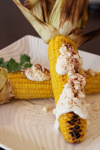 3About 10 minutes before serving, brush the corn with melted butter, return to the grill and turn frequently until nicely browned. (If you hear the kernels begin to pop, the corn is ready!) Serve right away, passing the crema, cheese and powdered chile for your guests to use to their own liking.