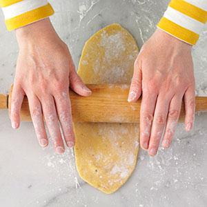 Lightly dust work surface with flour; knead dough gently five times. Divide into six portions; cover with plastic wrap. Let rest 30 minutes.