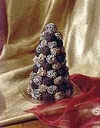 Cover cone with foil.Starting at bottom of cone,attach larger truffles with toothpicks.Use smaller truffles towards the top.Refrigerate until serving time.