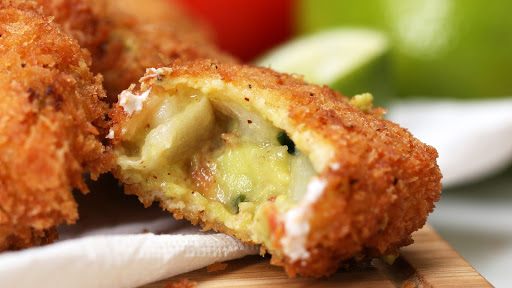 Mash Avocados with juice of lime. Mix in chopped tomato, cilantro, garlic, salt & chili powder. Cut onion into 1/2 inch slices. Carefully separate the layers into individual rings on a wax paper lined tray. Layout onion rings & fill each with guacamole. Place try in the freezer until solid about 1 hour.