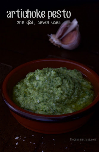 Pesto is perfect as a base for pizza, as a dip, mixed with mashed potato, in a pasta salad, thinned out with olive oil to make a dressing, in any scrumptious soup, or even just spread onto a crostini. Artichoke Pesto combines the bold flavors of rocket lettuce or arugula with the rich flavors of artichokes, olive oil, parmesan cheese, and fresh lemon juice.