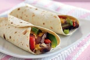 CUTsteak and vegetables into thin strips. Spoon onto tortillas; top with cheese. Roll up.