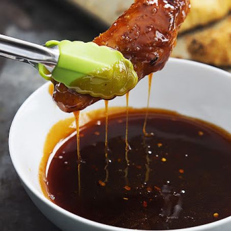 Bake chicken for 15-25 minutes until golden-brown and cooked through. While chicken tenders are baking, prepare the sauce. In a medium sauce pan combine all sauce ingredients. Stir over medium heat for about 5 minutes, then reduce to low and allow to simmer until ready to use.