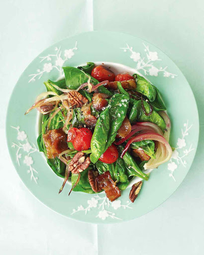 Warm Spinach Salad with Bacon, Tomatoes, and Pecans