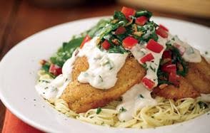 Yummy!!! Tilapia is sautéed in lemon butter cream sauce. Served with spinach, tomatoes and angel hair pasta.