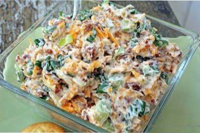 Mix the onions, cheese, mayo, bacon bits, and slivered almonds together. Chill for 2 hours.