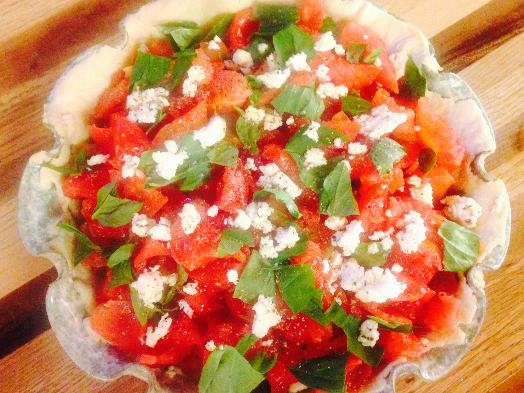 Layer seeded tomatoes, basil and cheese. Top with drizzle of oil from cheese jar. Salt and
