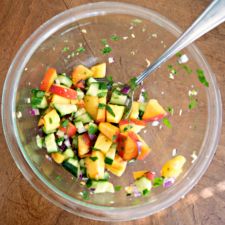 - 1 pound fresh peaches, peeled, halved, pitted and cut into 1/2 inch wedges or 12 oz. frozen, sliced peaches, thawed