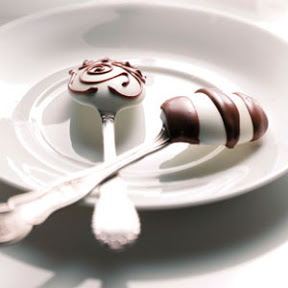 In a microwave-safe bowl, melt 3/4 cup milk chocolate chips; stir until smooth. Dip half of the spoons into chocolate, tapping spoon handles on the edge of the bowl to remove excess chocolate. Place on a waxed paper-lined baking sheet. Chill for 5 minutes or until set. Repeat with 3/4 cup vanilla chips and the remaining spoons.