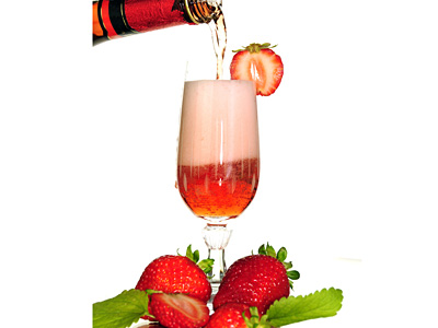 Pour into a chilled wine goblet and add cold champagne. Stir gently so as not to lose the bubbles.