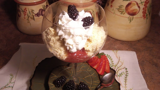 Pour into individual brandy snifters, parfait glasses or a glass or trifle bowl. Refrigerate until cold about 3-4 hours or until you are ready for dessert! Right before serving, layer with fruit sauce, a large dollop of whipped cream and a few berries of choice.