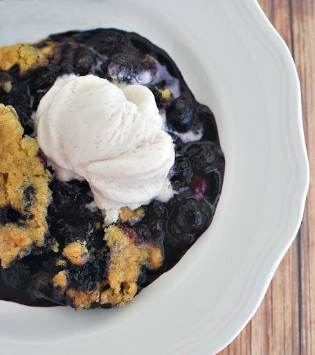 Bake for 50 minutes to 1 hour or until cake mix topping is golden brown and blueberry filling is bubbly. Let come to room temperature and cool for about an hour after baking. serve slightly warm with a scoop of vanilla ice cream.