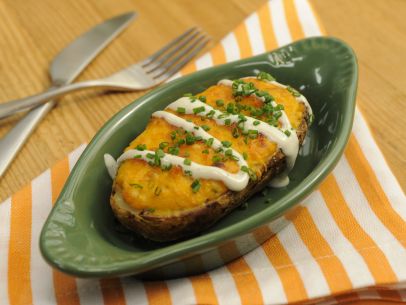 Drizzle the potatoes with the ranch dressing and top with the chopped chives. Serve warm.