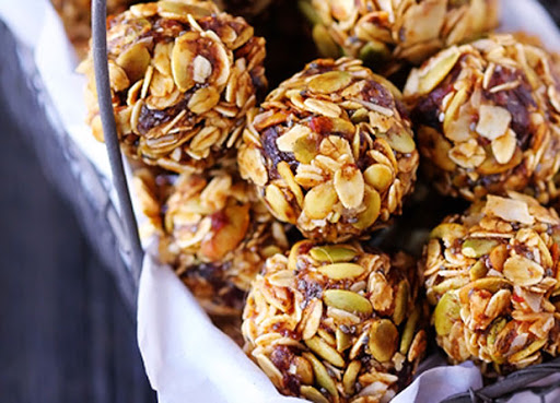 Transfer the mixture to a large bowl, and stir in the oats, coconut flakes and pepitas until evenly combined. Cover and refrigerate for at least 30 minutes.