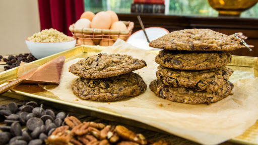 6) When ready to bake, line another cookie sheet with parchment paper. Place the chilled cookie dough balls at least 3-1/2 inches apart on the cookie sheet, and bake in batches. Bake for 20 to 30 minutes, or until the cookies are golden-brown on top. Keep your eye on the; check them after 15 minutes. Using a metal spatula, place the cookies on a rack to cool.