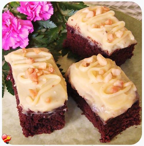 Cool 10-15 minutes before removing from pan. Cool completely before frosting. Top with macadamia nuts.