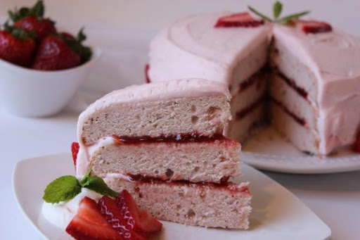 Frosting: Beat cream cheese and butter until fluffy and add the confectioners sugar, strawberries and extract; beat until smooth. Place bottom cake layer on your serving plate; top with jam and then frosting, repeat layers.