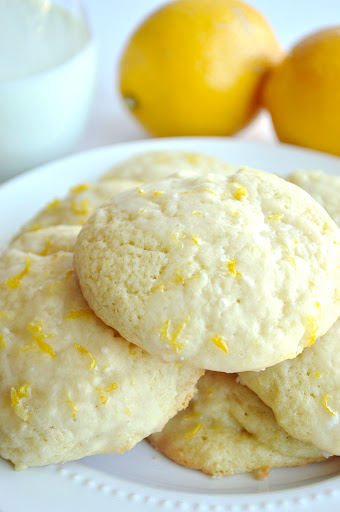 Once cooled prepare the glaze by whisking the powdered sugar, lemon juice, and lemon zest together until well combined. Spoon onto the top of the cookies. Allow to sit and dry, glaze will harden.