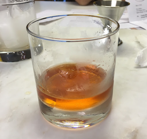 In another old fashion glass put one sugar cube. Soak it with bitters and add 1oz of water.