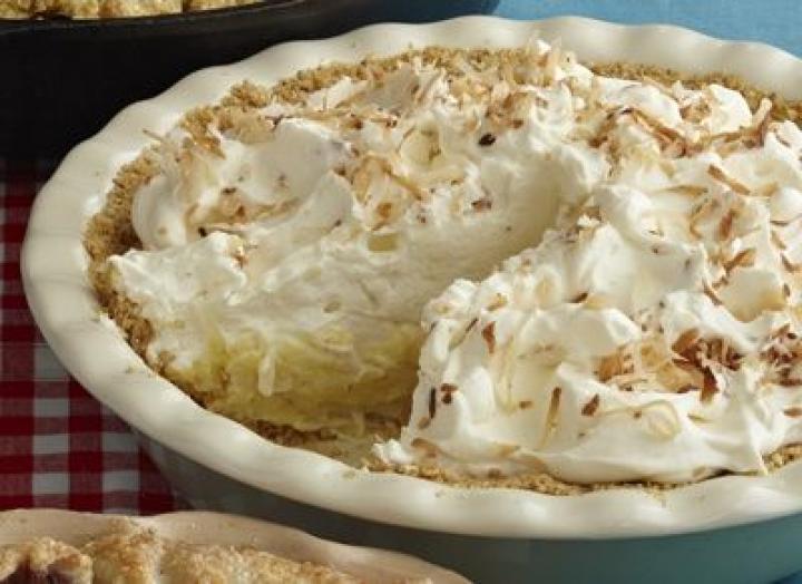 Spread the cream over the pie and sprinkle with toasted coconut.