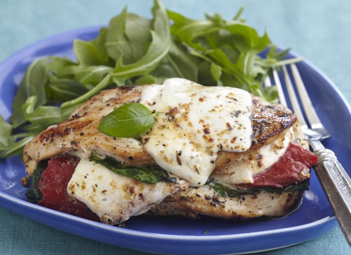Mozarella, Roasted Red Pepper and Basil Stuffed Chicken