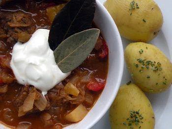 7. Serve with a dallop of sour cream (or the sour cream can be stirred into the gulash in step 6).