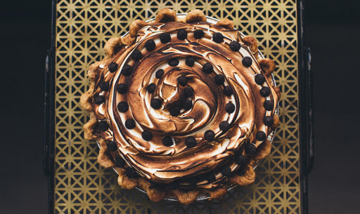 Using an electric mixer on high speed, beat until stiff, glossy peaks form and the sides of bowl are cool to the touch, 5–7 minutes. Add reserved marshmallow fluff to meringue and beat just to combine. Dollop marshmallow topping over top of cooled pie filling and use a spatula to spread, creating decorative peaks and swirls. Use a kitchen torch to toast marshmallow topping, if desired. Decorate with chocolate chips.