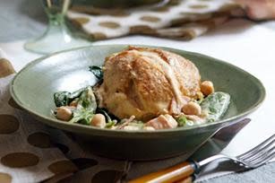 Pollo cremoso con espinacas y garbanzos