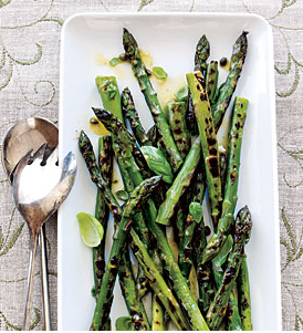 2. Place asparagus in a shallow dish. Add 1 tablespoon oil and 1/4 teaspoon salt, tossing well to coat. Place asparagus on grill rack coated with cooking spray; grill 4 minutes or until crisp-tender, turning after 2 minutes.