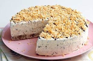 Pastel helado con chispas de chocolate y coco