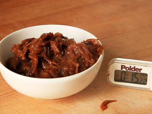 For even faster caramelezing, add 1 teaspoon sugar and 1/4 teaspoon baking soda to onions at start. This method will get you sweet, soft onions for adding to burgers, sandwiches, pizzas, etc. However, it is not a pure substitute for traditionally caramelized onions for recipes like onion soup—the flavor will not quite be the same.