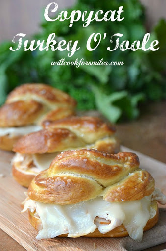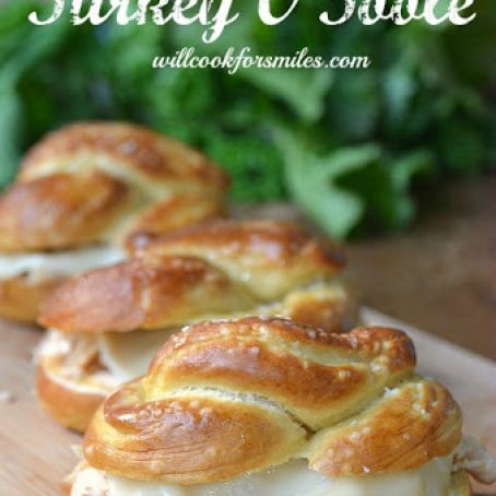 Gather the turkey into one pile and top it off with cheese. Wait until the cheese is melted and add the turkey/cheese to the pretzel roll.