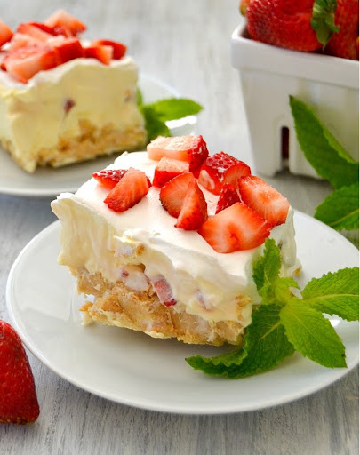 Spread the mixture into the pan. Top with the remaining Cool Whip and the remaining strawberries. Cover and refrigerate for at least 6 hours, preferably overnight, until set.