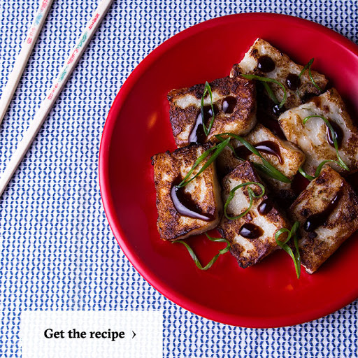 2. Line a 9-by-5-inch loaf pan with plastic wrap and set up a steamer large enough to fit the loaf pan over a pot of simmering water. In a large skillet, heat 2 tablespoons of the vegetable oil over medium heat. Sweat the daikon and scallions until translucent, 10 minutes, making sure it doesn't brown. Transfer the daikon to a bowl and let cool.