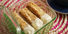 For a fancier treat, melt white chocolate and dip each square halfway and chill to set.
