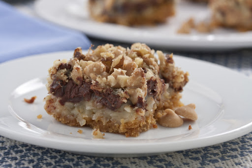 Pour melted butter evenly over bottom of an 8-inch square baking pan. Spread graham cracker crumbs evenly over butter. Layer with coconut then chocolate chips followed by peanut butter chips. Drizzle sweetened condensed milk over top and sprinkle with walnuts.