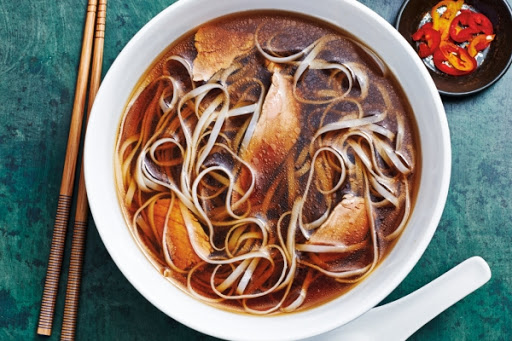 The essence of this Vietnamese pho lies in the long-cooking, rich beef broth which forms the base of the soup - the slow cooker is the ultimate tool for the task. Fresh, vibrant garnishes, like bean sprouts, assorted fresh herbs such as mint, cilantro and basil, thinly sliced onion, chilies and lime wedges, make each and every bowl of soup unique. Serve them at the table in separate bowls so each person can create the pho of their dreams.
