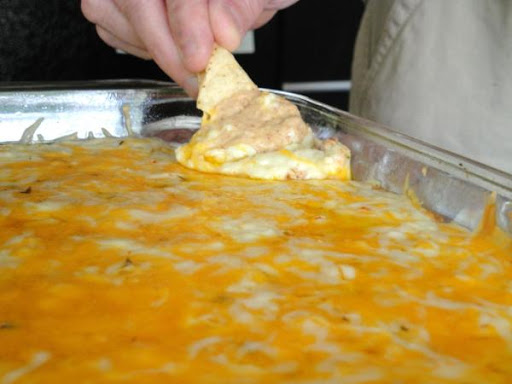 Spray a 9x13-inch baking pan with cooking spray. Spread bean mixture evenly over the bottom of the baking dish. Top with the shredded cheese. Bake for 25 to 30 minutes, or until cheese has melted and is beginning to brown. Serve with tortilla chips.